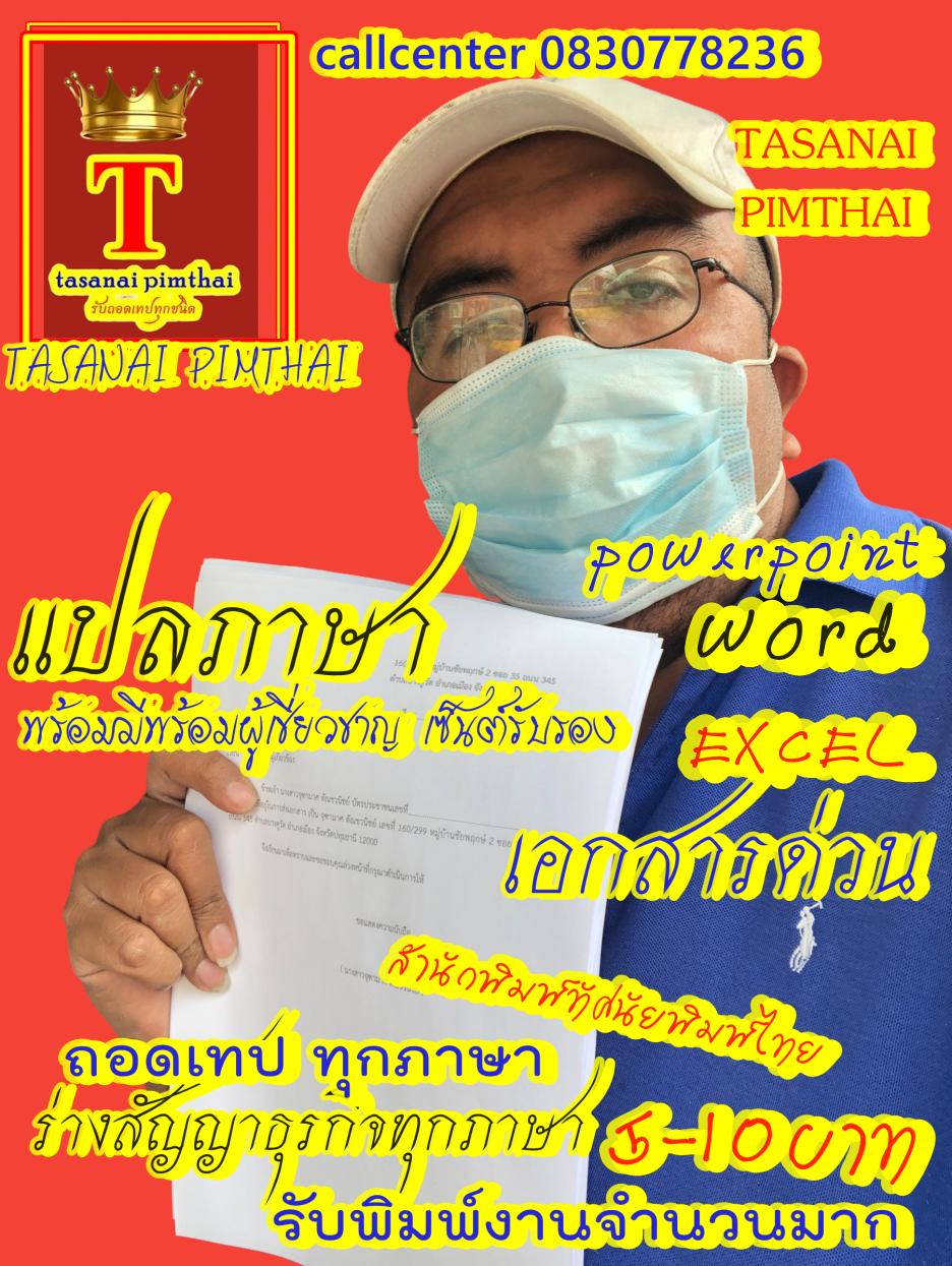 ห พิมพ์ไทย 1แผ่นก็รับ เทคแคร์,ดูแลถึงที่ เสียเงินแล้วคุ้ม ต้องได้รับงานที่ดีที่สุด 5บาทก็รับ เสียเงินไม่เสีย ความรู้สึก แก้ไขฟรีทุกบริการ .. บริการทั่วประเทศ มีสำนักงาน ทุกบริการดูแลจนใช้งานได้... รับพิมพ์งาน ได้ไฟล์งาน และปริ้นพร้อม ใส่แฟดไดส์ และCD ส่งฟรีถึงบ้าน (ปริ้นขาวดำ) ได้ทั้งไฟล์ข้อมูลไว้อัพเดทแก้ไข บริการถึงที่ ทุกจังหวัด 0830778236 , 0889690167 ทุกภาษา....